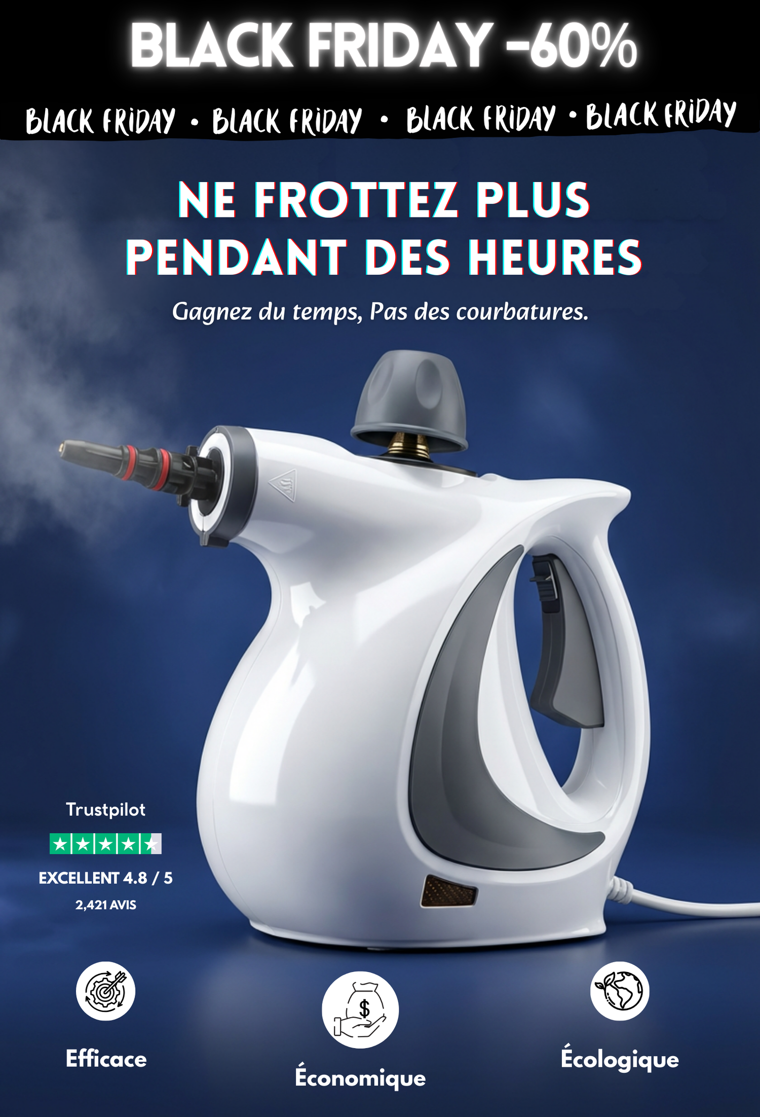 💨 En quelques secondes, la saleté disparaît sans effort.