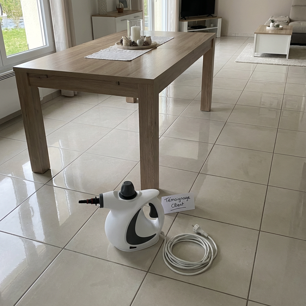Non, la vapeur est “sèche” : les surfaces restent simplement humides quelques secondes.